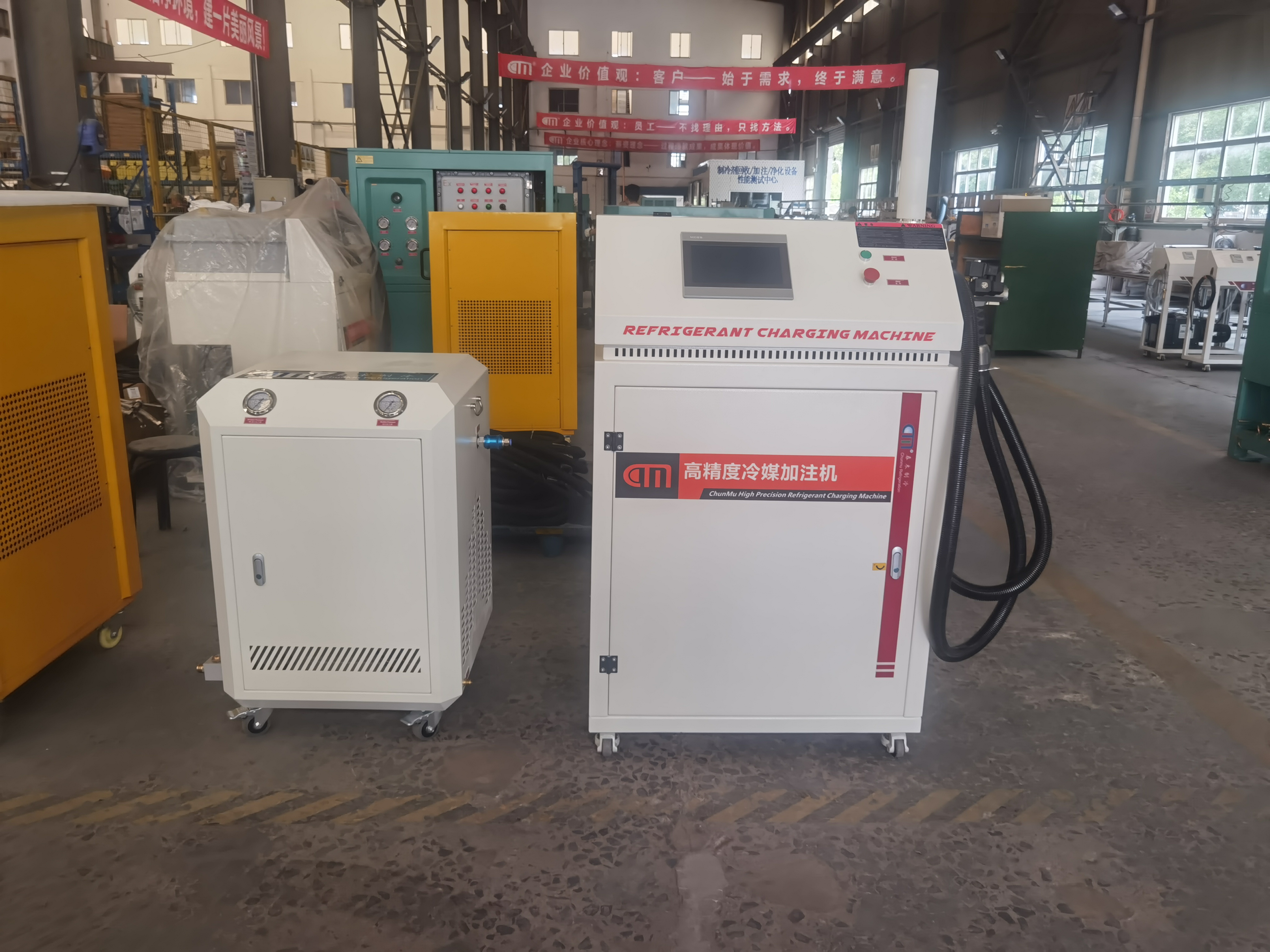 广州爱高制冷是一家专注于制冷设备生产的高新技术企业,主要产品包括降膜式蒸发冷器、蒸发冷大涡旋冷水机组及螺杆冷水机组等。随着订单量增加,爱高制冷急需一台高效、精准的冷媒加注设备,以满足不同机组的快速冷媒加注需求。